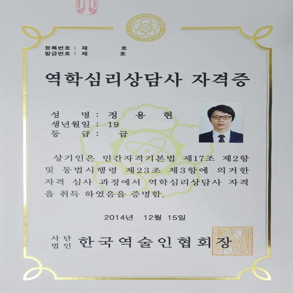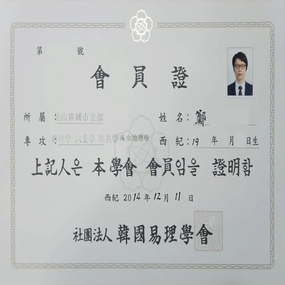 ※ 역학상담사 자격증 보유