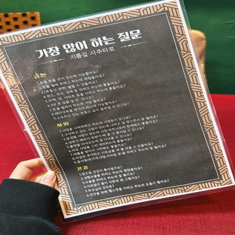 조부와 부친 본인까지 3대째 역술을 이어오고있고 2024년 전국 100대 역술인에 선정된바있는 20년경력의 찐 사주타로 술사입니다.